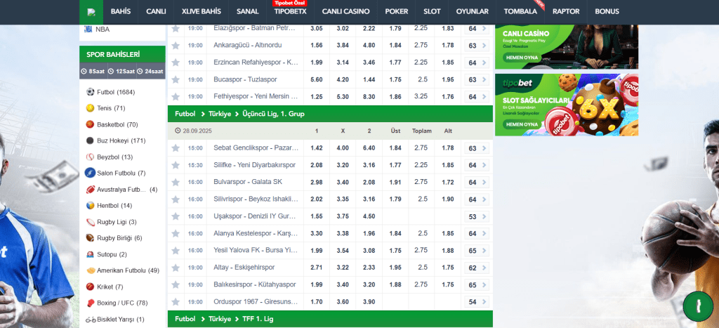 Tipobet Canlı Spor Bahisleri ile Anında Aksiyon Spor tutkunları için canlı bahis ayrı bir heyecan sunmaktadır. Tipobet bu alanda geniş